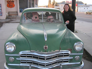 A few weeks back I went with my mom and Michael down to Cedar City because my mom wanted to visit a Wellness Doctor. Sad to say, but there is no place to eat in Cedar City. We drove around looking for a place and ended up at the Sizzler. But by that time we were starving and steak and salad bar was very satisfying. Michael and I went walking later that evening and discovered a great gift shop, where they had some Jim Shore Disney items at 50% off. Of course we could not resist. My mom about died. On the way back there was this lot with some old cars and they had a Mickey and Minnie in the front. We do know the best place to stay, the Abbey Inn, which has a great breakfast and the rooms are nice and comfortable.